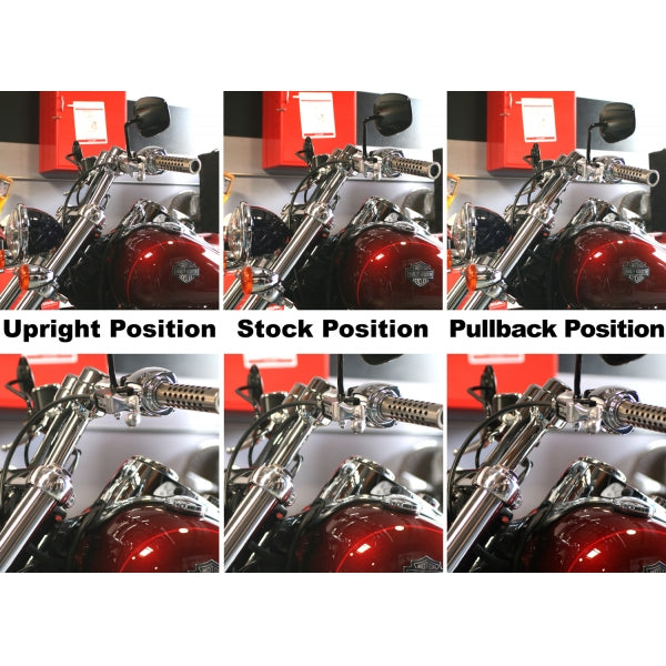 Tilt your risers away from you to get a custom chopper look and feel at a fraction of the price of raking your front end or installing new handlebars