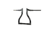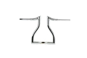 Its beefy, it looks killer, and is insanely comfortable! There are three end rises available, 12, 14, and 16-inches, measured at the grips. With an overall width of 30.5-inches, they give the rider that T-Bar feel with a completely different look. The pullback measures at 5.5-inches to add to the aggressive riding position of these bars. Finishes are available in Chrome and Gloss Black, matching just about any Road King.